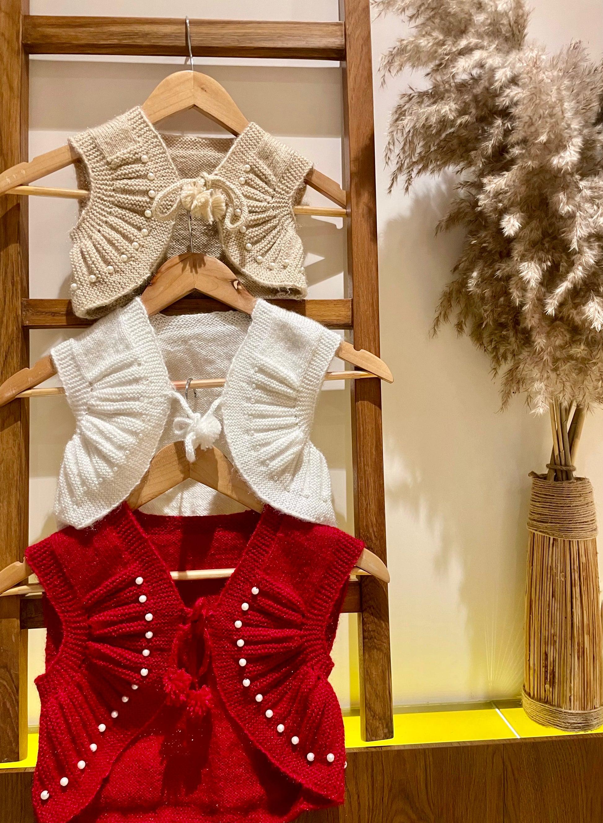Wrap your little one in cozy, handmade warmth with our Hand Knit Jackets! Available in beige for ages 12-24 months, white for 24 months to 5 years, and red for 5-10 years, this jacket will keep your fashion-forward girl stylish and snug. (Plus, supporting local artisans is always a good look.)