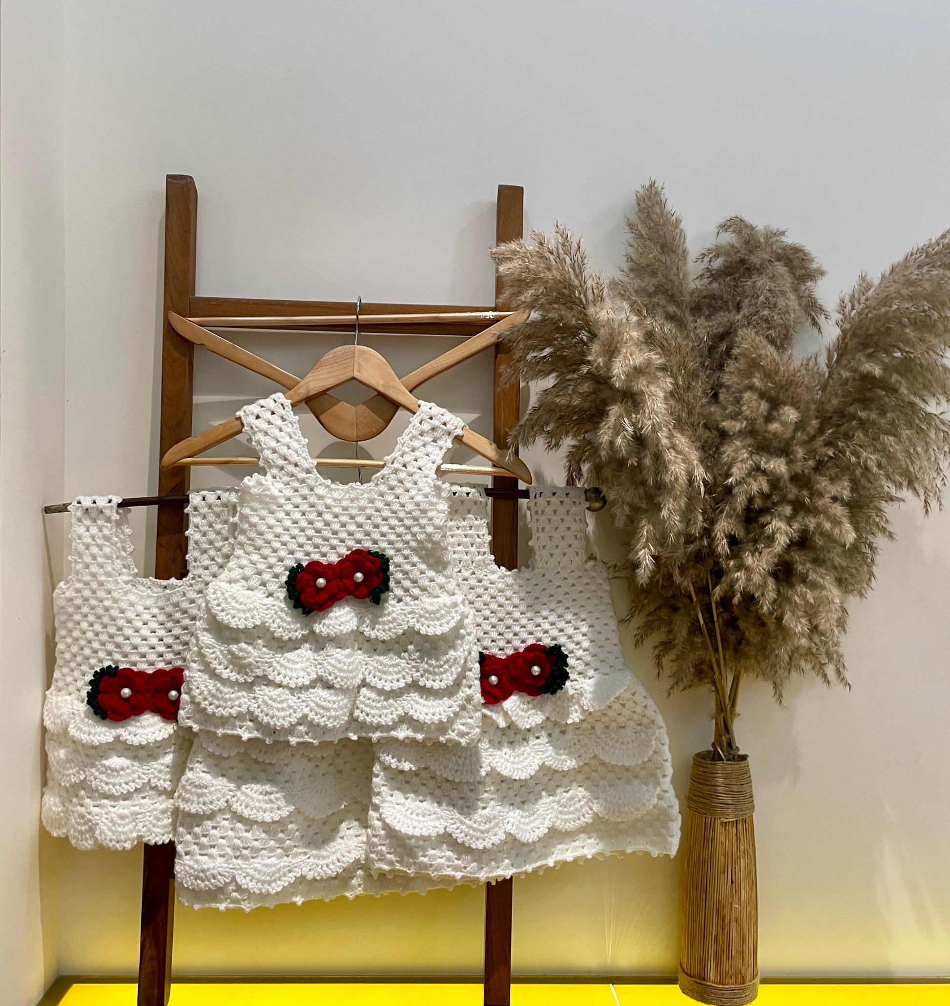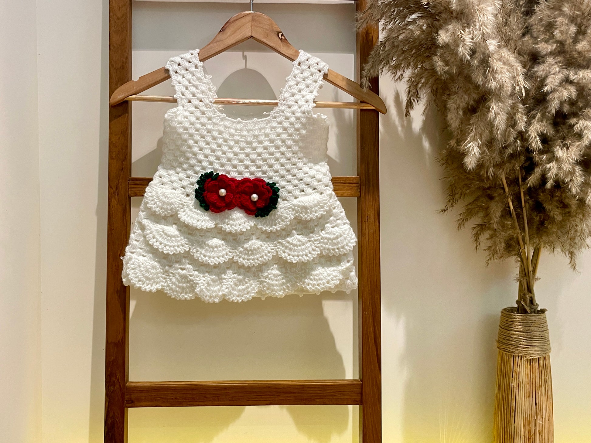 Be the belle of the ball with our Ivory Princess Frock! Hand-crocheted for girls aged 2-4 years, this frock is perfect for any party. Get ready to steal the spotlight with this attention-grabbing party wear!