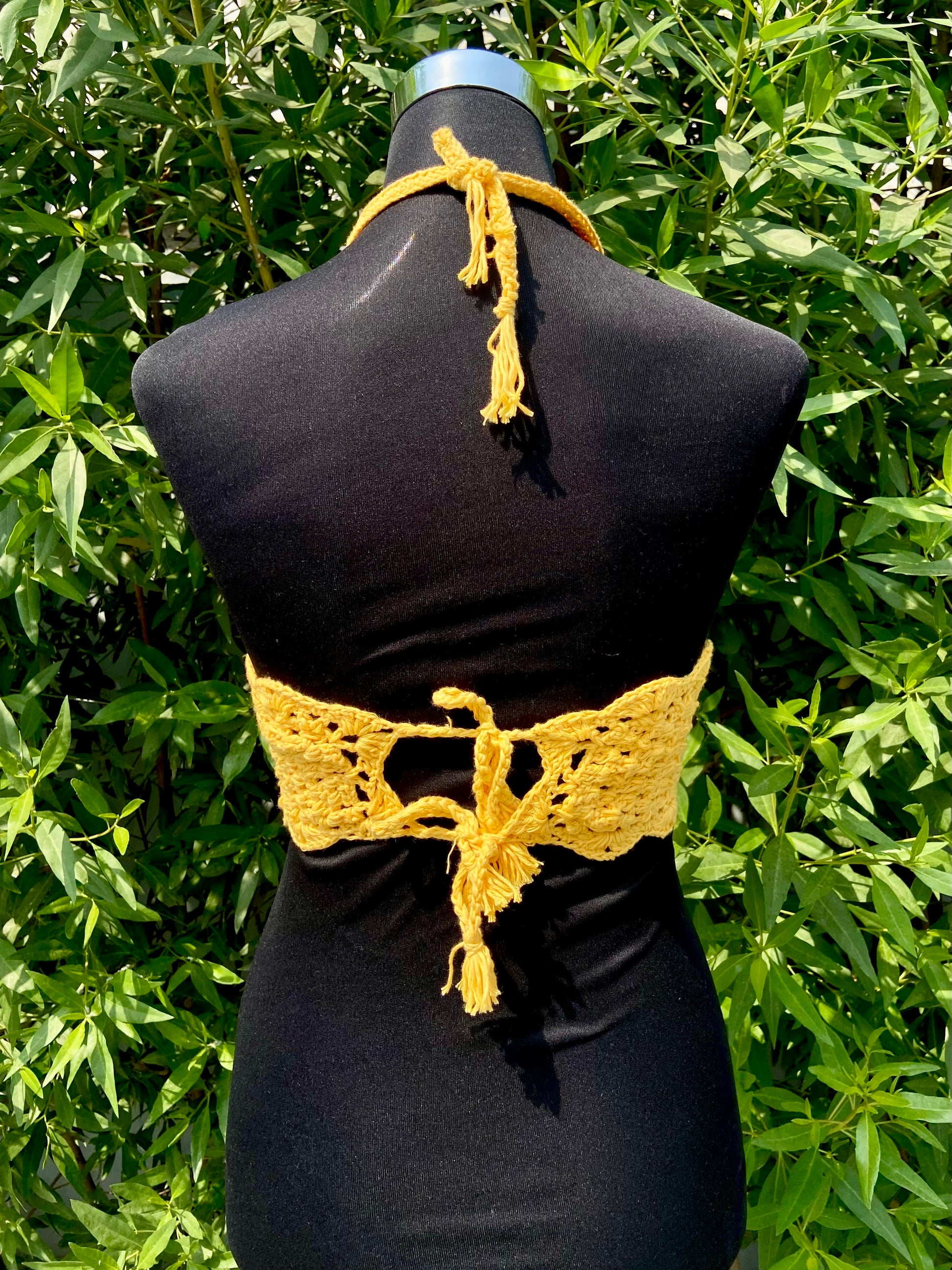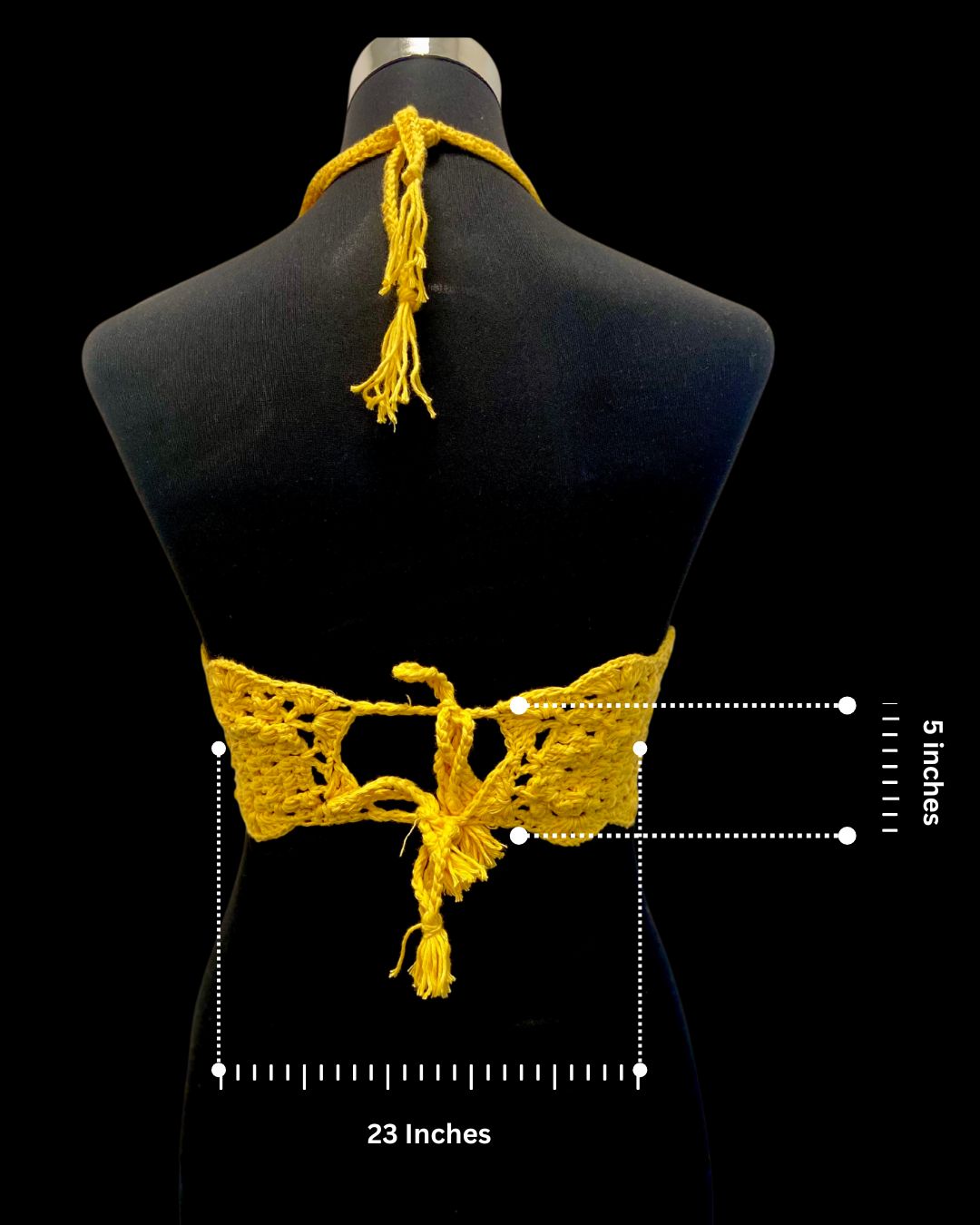 Get ready to turn heads with our stylish mustard bralette, 'Solstice Spell Cotton Handmade Crochet Bralette by Chutak Binak'. Perfect for summer, this halter neck top is made from breathable 100% cotton fabric, keeping you cool and stylish all season long. Whether hitting the beach or looking for a baddie outfit, our bralette's sexy and stylish design will make you stand out. Available in all sizes. We will contact you to confirm your perfect custom size.
